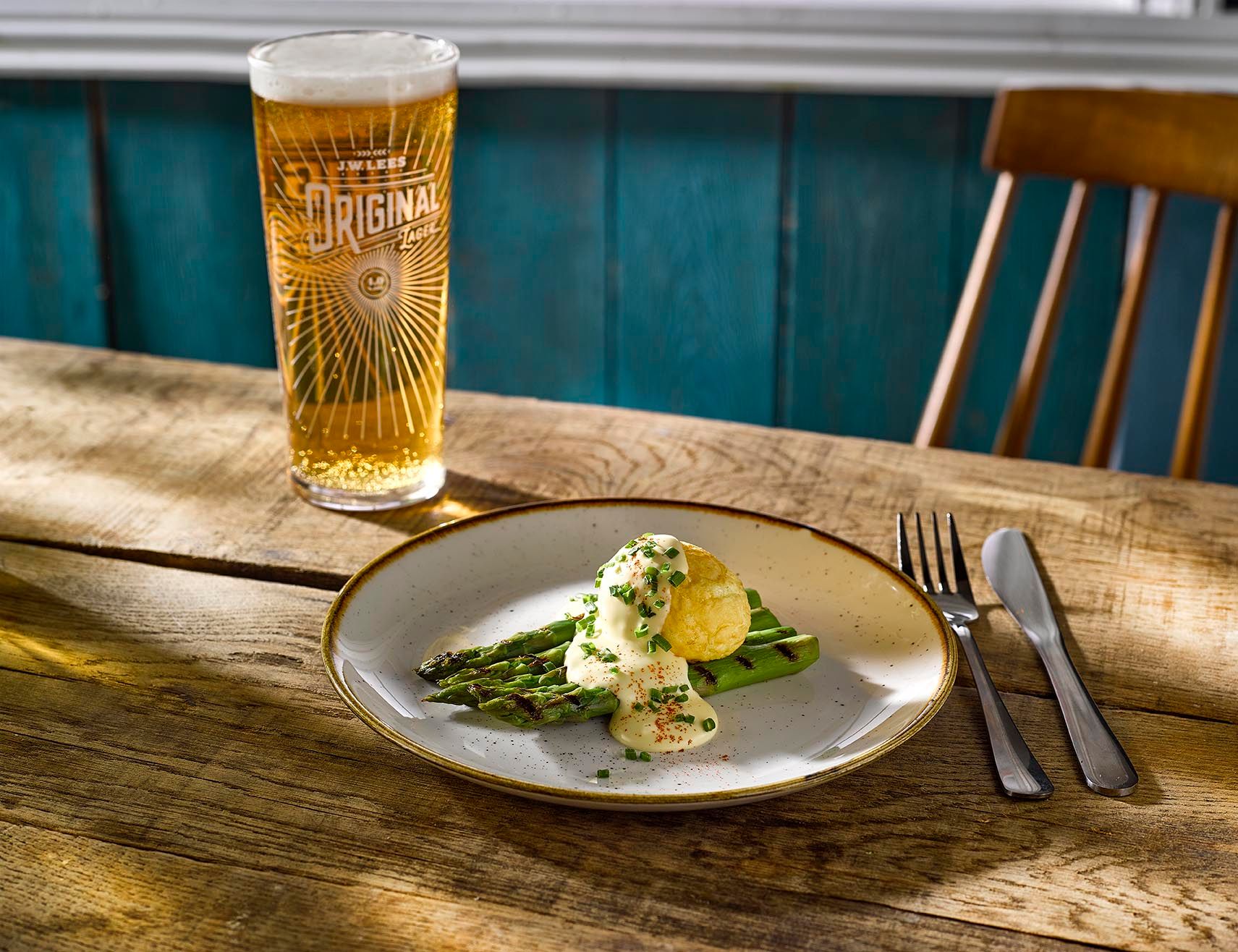 (V) – suitable for vegetarians, (VG) – suitable for vegans, (VGA) – vegan option available, (NGCI) – No Gluten Containing Ingredients, * Can be cooked without gluten. POA = Price On Application. Please ask your server for the price. lf you suffer from a food related allergy please inform a team member for advice before you order. Not all ingredients are listed on the menu & our kitchen uses nuts, gluten and other allergens. Although every care is taken to prevent cross contamination of allergens we cannot guarantee it. Should the listed product be unavailable due to circumstances affecting the supply chain it may be replaced by a similar alternative product. Fish may contain bones. Cooking oil may contain genetically modified ingredients. The calories listed are per serving, additional items to a dish (eg: sauces) are listed separately. Adults require around 2000kcal per day. Weights stated are uncooked and approximate. Prices are GBP. *MPA is our JW Lees Manchester Pale Ale; a golden ale brewed in Manchester entirely from all British malt.